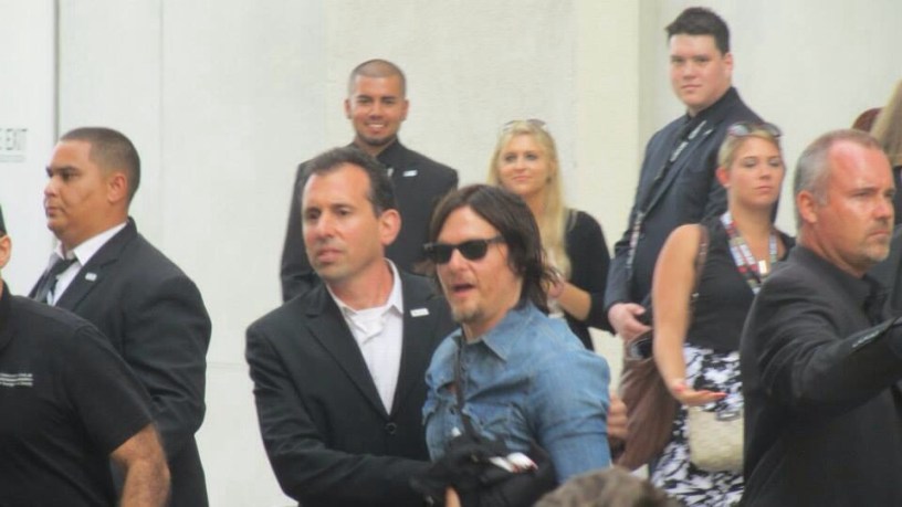 If you follow sdcc tweets when during the con, someone is always tweeting this amazing moment of running into a celebrity on the show floor, out in the city. My wife has had better luck then I have in this department as it takes a bit of luck and when it happens, you might not be quick enough to capture the moment. I was out on the sdcc exhibit floor, just taking in the sights with no real agenda and I saw a small crowd forming near one of the entrances that are off limits to attendees. One thing I have learned is that if a crowd is forming, you stay put and wait to see why. Well, I did just that, and it paid off as almost the entire cast of The Walking Dead came walking right by. At this point, the small crowd had turned into a very large crowd. I was able to get a quick video of the moment and you can see what kind of chaos the moment had turned into.