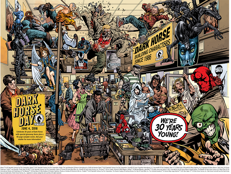 Dark Horse Comics is celebrating 30 years of comic book publishing next month! To mark this milestone, they are making Saturday, June 4th “Dark Horse Day”. Certain retailers across the world will receive special promo materials including a Dark Horse Day sampler, a forty-page comic featuring some of the notable titles from the comic publisher’s library.