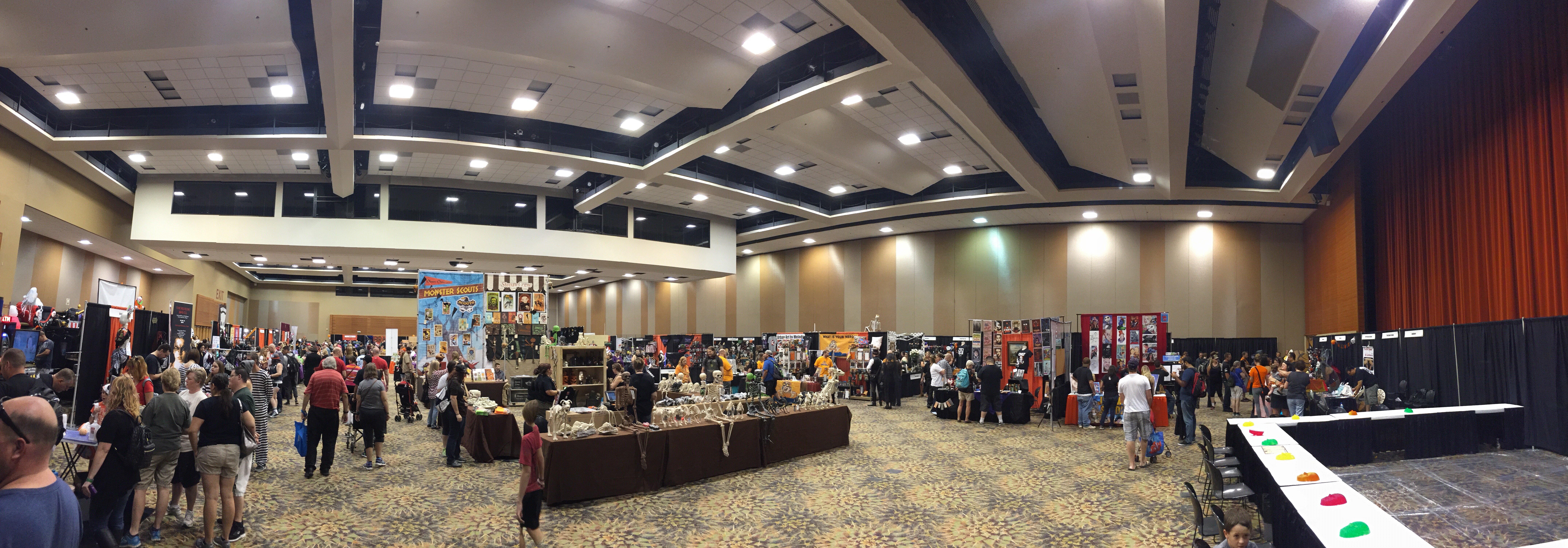 The con was held in the South Building of the Phoenix Convention Center and it was made up of an exhibit hall and a hallway of panel rooms. The exhibit hall was made up of vendors and artists who specialize in the creepy, spooky, and fun. It’s a bit different going to a con and not seeing a single Captain America or Steven Universe print for sale but it was a nice change of pace. Many of the artists had hand made goods and a few prices of art while the vendors offered everything from steam punk accessories to Halloween decorations and inflatable yard decorations.