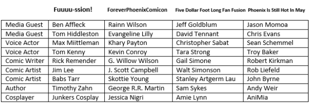 Some of you may or may not know that this is the time of the year where fantasy football drafts are in full swing. The uber popular game takes over many hours of peoples lives and figured it would be fun to find a way to incorporate that into what I do here on the blog. A few buddies and I decided to see who could draft the best guest roster for Phoenix Fan Fusion.