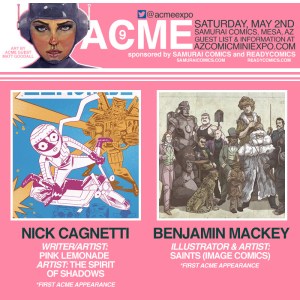 Not familiar with the ACME? ACME is the Arizona Comic Mini Expo that takes place at Samurai Comics in Mesa during Free Comic Book Day. This year it takes place on May 2nd and the mini comic expo features a handful of comic book creators (just like an artist alley at a comic convention).