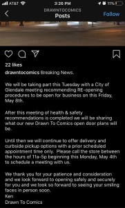 After the recent announcement by Arizona Governor Doug Ducey, retail shops will be able to open in limited capacity starting May 8 if they so choose to. Stores can choose to follow the guidelines set fourth by the Governor or they can continue just operating with curb side pickup and delivery. So where does that leave comic book shops across Arizona? Only a few shops have posted about it on social media so far but I will continue to update this article as more comic book shops announce plans.