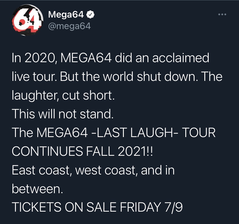 Tickets go on sale this Friday, July 9th for their show on December 7th at the Crescent Ballroom in Downtown Phoenix. You can keep an eye on the MEGA64 site or the Crescent Ballroom site for additional details as they become available. See you there.