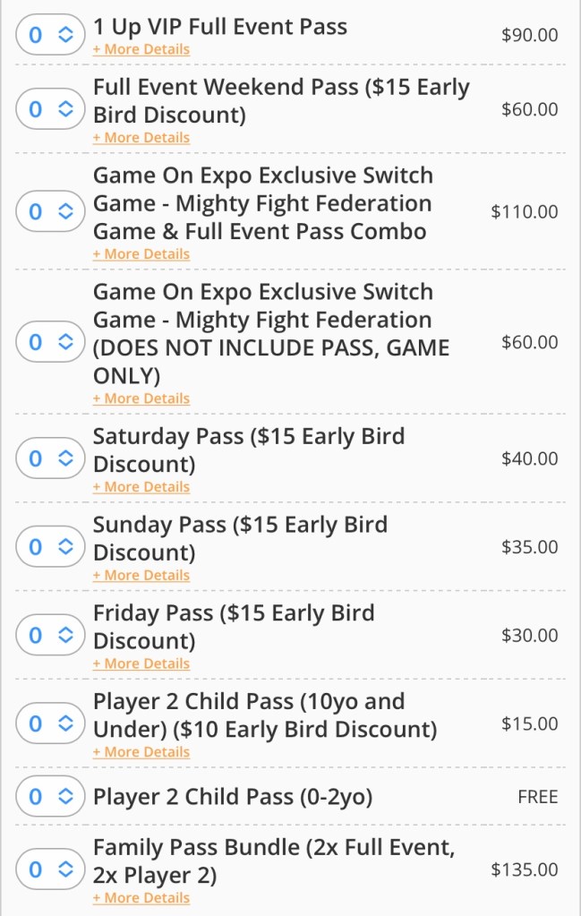 No details (that I saw) about when early bird discount expires but if you’re already planning on going, wouldn’t hurt to buy them soon to save some money. You can head on over to the Game On Expo site to purchase passes.