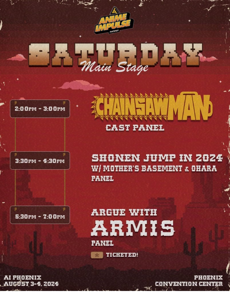 We are less than a week away from ANIME Impulse Phoenix at the Phoenix Convention Center. The con recently updated their site with the panel schedule for its guests.