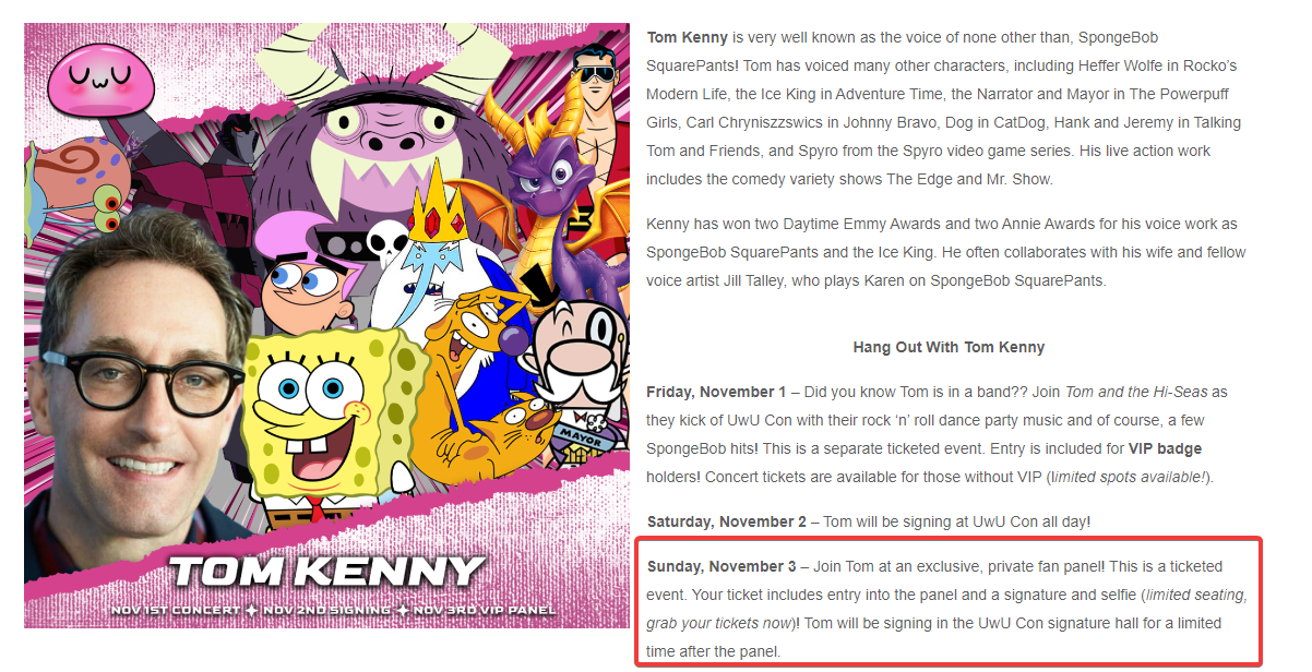 Tom will also be signing all day on November 2 and will be having an exclusive fan panel on November 3. The panel is also a ticketed event that includes entry into the panel, a signature, and a selfie. No additional details just yet on the cost of the exclusive fan panel but keep an eye on the UwU Con website.