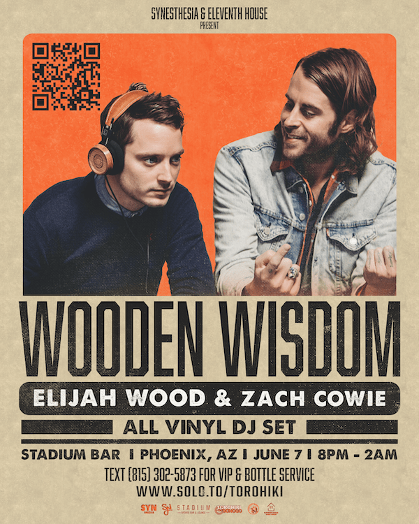 Elijah Wood is a guest at this year’s Phoenix Fan Fusion but you will also get the chance to see him and Zach Cowie aka Wooden Wisdom perform their all vinyl DJ set the same weekend. Happening at Stadium Bar & Lounge in Downtown Phoenix on June 7th, tickets are currently on sale starting at $46.59 a person.