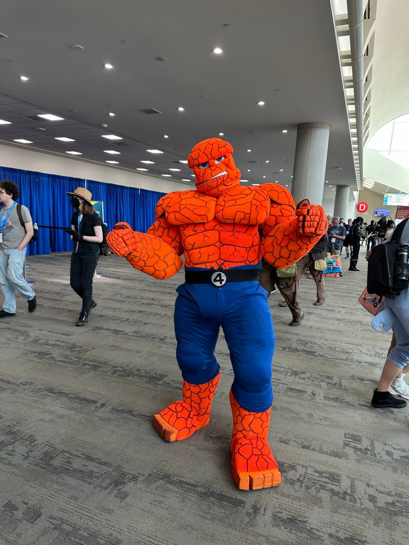 My first official day at Comic-Con 2025! I spent a lot of the morning browsing the exhibitor hall, taking photos, and keeping note of things I wanted to come back and possibly buy. Only for the second year, I was able to get my hands on the San Diego Convention Center exclusive chocolate that is made just for Comic-Con. They are $10 a bar so I picked two of the four which were the Home Run bar and Pop Star Party bar. I was also able to be the first person in line for the second chance wristband drawing for the WWE meet and greet that was taking place later that day. How that works is if there are any wristbands that were not picked up 60 minutes before the meet and greet, you can test your luck with the Comic-Con Box of Fate, a cube with a button that you push. If it lights up green, you win, if its red, you didn’t win. I was the first in line and I pushed it… nothing happened. They had to reconnect the box to their device and when they tested it, it lit up green in which I jokingly said “that was my push!” and they laughed and handed me the wristband.
