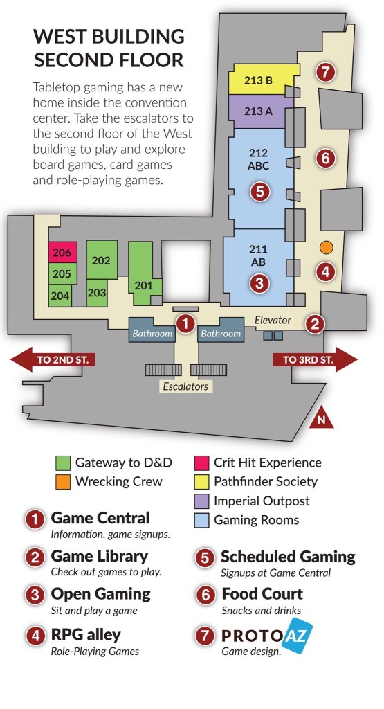 Another local gaming convention, Arizona Game Fair, will be taking over the majority of the second floor in the West building. There will be 80+ tables ready for you to join up with your friends and attendees in playing a wide variety of tabletop, board, and party games. The hours will be extended for this area as follows: